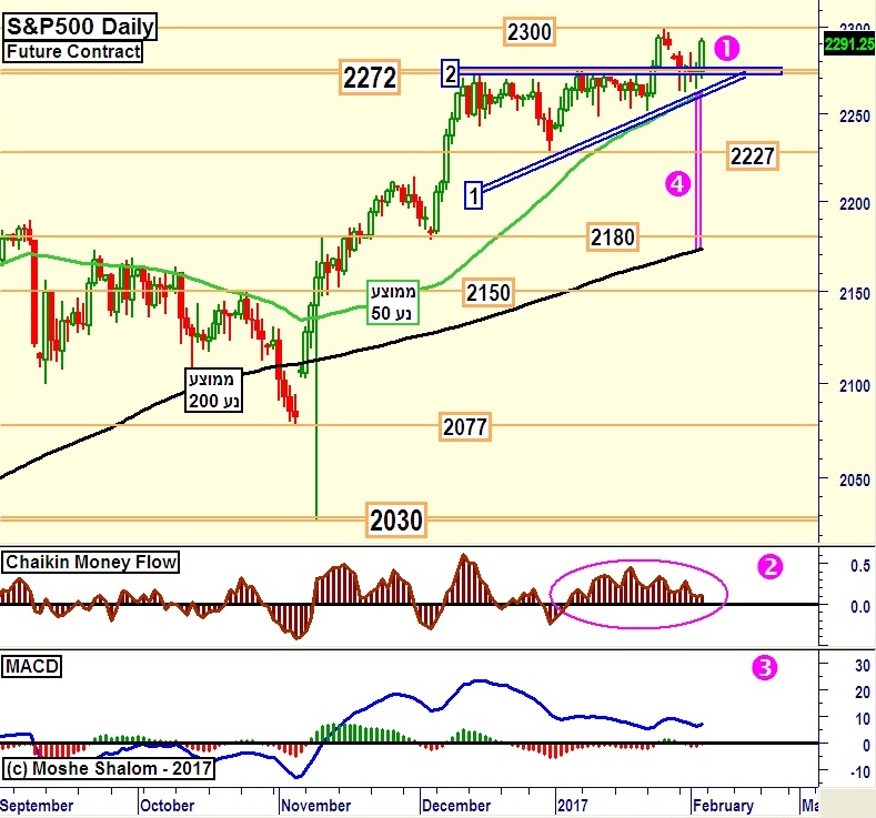 כל השבוע שעבר המדד בילה סביב אותו אזור, דהיינו סביב 2270. יש לזכור שאזור זה נמצא מאוד קרוב לשיא כל הזמנים, והמשיך לאותת חיוב אסטרטגי. נא ראו את 1 בגרף היומי המצורף.