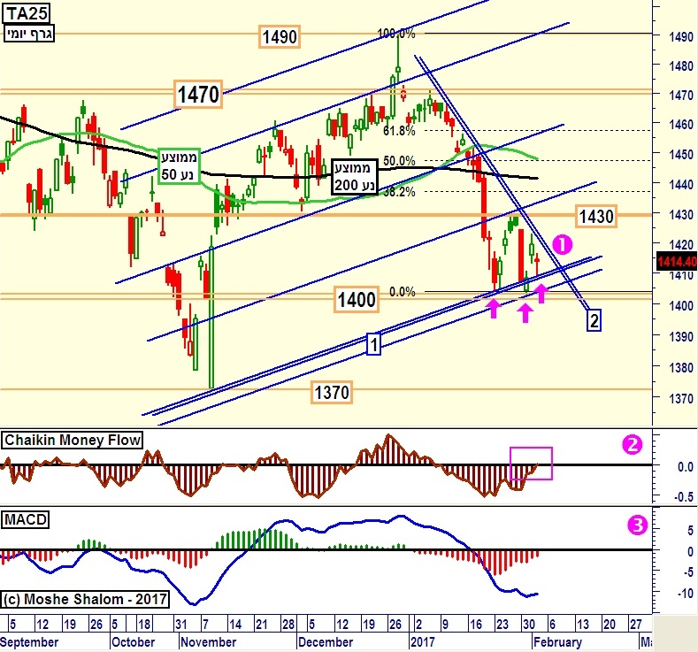 הנטייה למחשבה חיובית כאן גדולה יותר מן ההיפך. העובדה המרשימה של העמידה מעל סביבת 1400, והנר האחרון של יום חמישי, מעוררים הרבה תקוות. כל זה כאשר אנו עומדים על סף כניסת כסף מחדש לתוך המדד.