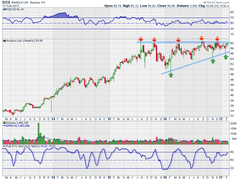 אמדוקס (סימול: DOX) - החברה עוסקת בפיתוח ושיווק פתרונות עבור תעשיית הטלקום העולמית. הפתרונות כוללים מערכות ניהול לקוחות והזמנות, הטמעות שירותים וניהול הכנסות ממוצרי תוכן (בילינג). מניות החברה נסחרות בבורסת הנאסד"ק ונכללות במדד הנאסד"ק 100 לפי שווי שוק של 8.77 מיליארד דולר.