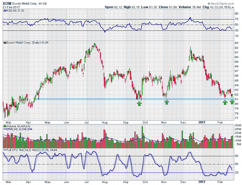 אקסון מובייל (סימול: XOM) – פועלת כחברת אחזקות אנרגיה ועוסקת בתחום הדלקים והכימיקלים. הפעילות כוללת חיפוש, הפקה, ייצור וזיקוק של נפט גולמי וגז טבעי ומוצרים נוספים בתחום הפטרוכימיקלים. מניות החברה נסחרות בבורסת ניו יורק ונכללות במדד הדאו ג’ונס לפי שווי שוק של 399.57 מיליארד דולר.