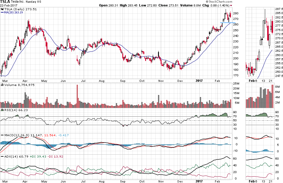 חברת טסלה מוטורס (סימול- TSLA) עוסקת ביצור של רכבים המבוססים על אנרגיית חשמל ואנרגיה היברידית. החברה מתמחה בפיתוח טכנולוגיות אנרגיה נקיות המוטמעים ברכביה. החברה נסחרת במדד הנסד"ק 100 לפי שווי שוק של 44.1 מיליארד דולר.