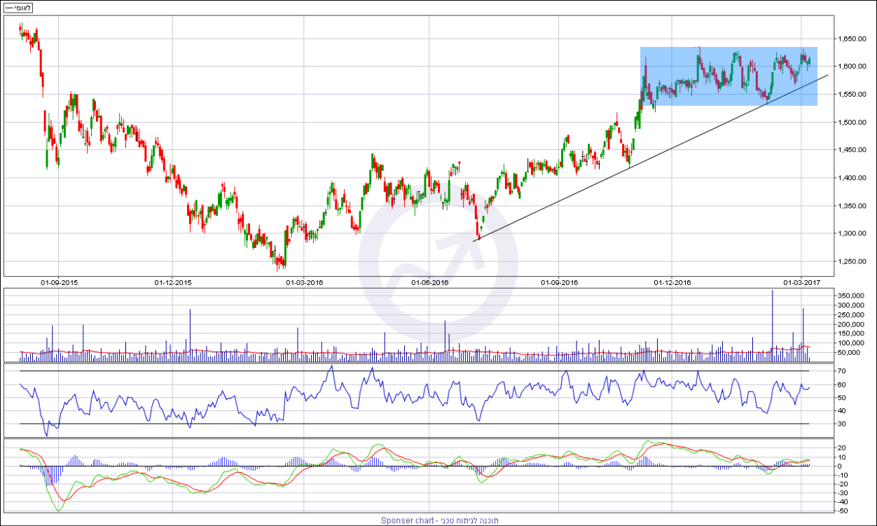 ניתוח טכני – מחודש נובמבר האחרון ניתן לראות שהמניה נעה בתנועה צידית אזור התנגדות נוצר סביב רמה של 1620/1630 נקודות ואילו תמיכה אופקי קיים ברמה של 1520 נקודות.