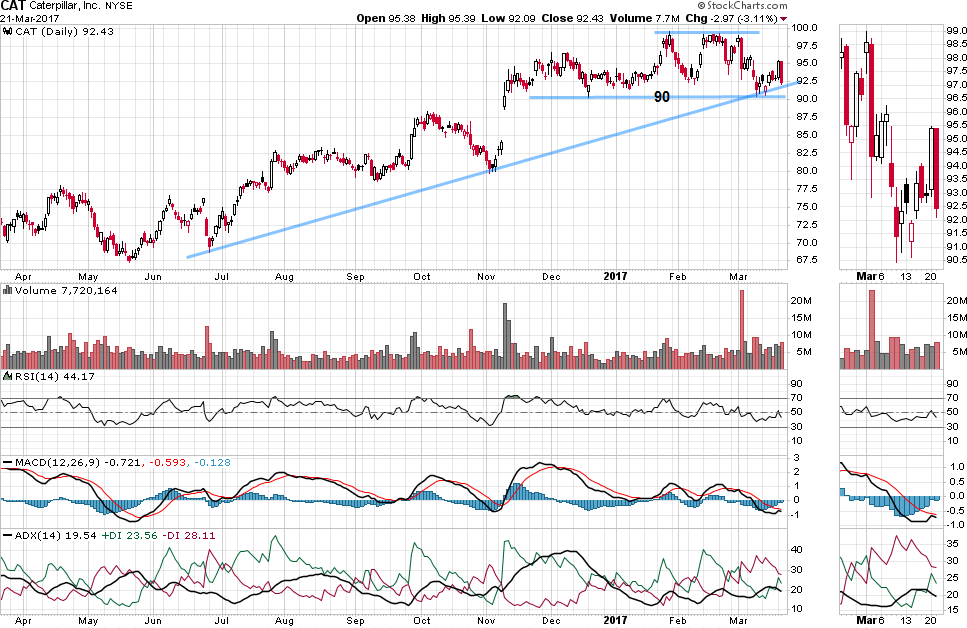 חברת קטרפילר (סימול- CAT) עוסקת בייצור ושיווק של מכונות למגוון תעשיות (בעיקר לבנייה וחקלאות). החברה בנויה מ 4 חטיבות: חטיבת המכונות, חטיבת המנועים, חטיבה פיננסית וחטיבת הביטוח. בנוסף, החברה מחזיקה חברת לוגיסטיקה המספקת פתרונות ושירותים מסביב לעולם. החברה נסחרת במדד הדאו ג’ונס 30 והאס אנד פי 100 ו 500 לפי שווי שוק של 54.21 מיליארד דולר.