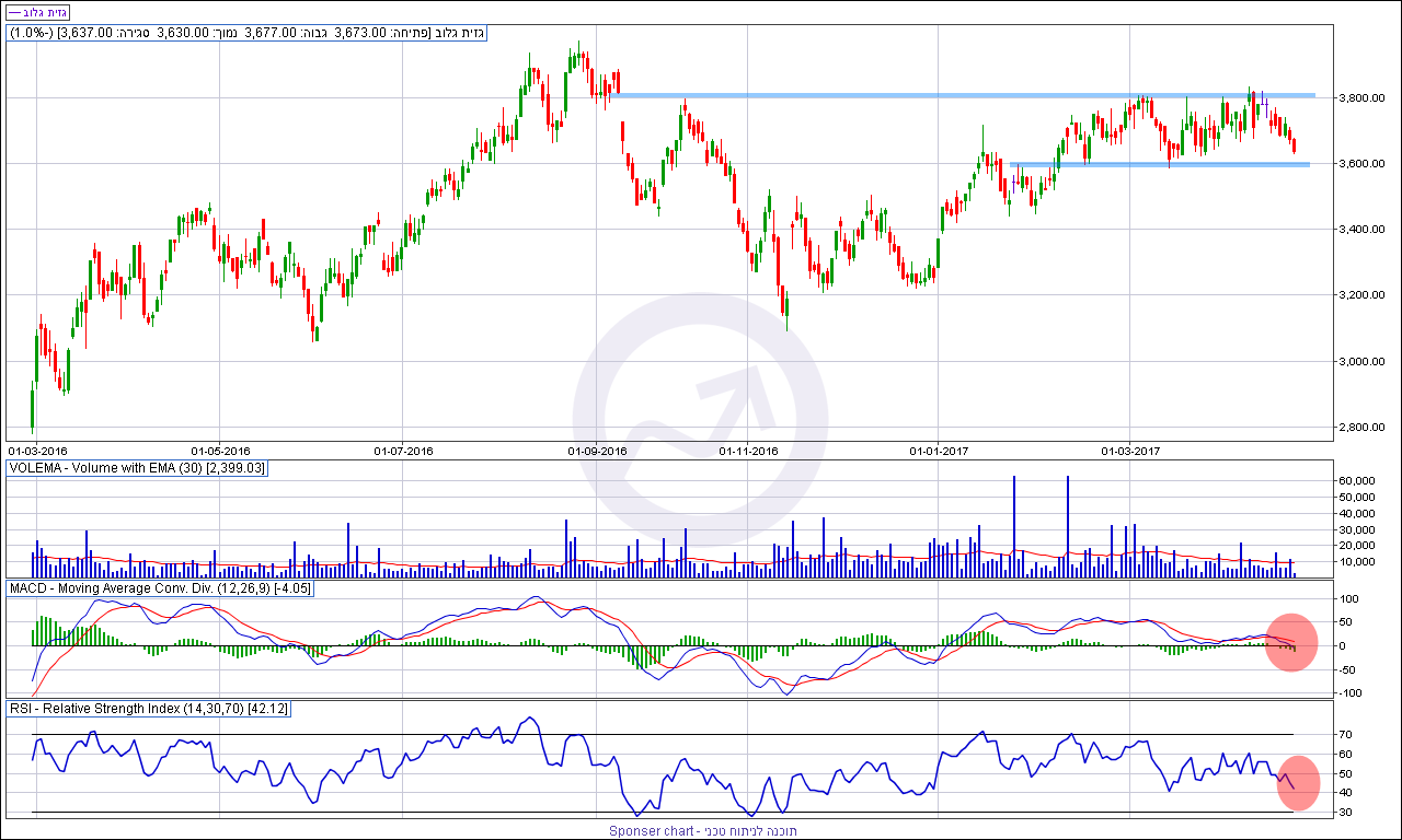 מניות החברה סוגרות 3 חודשים של דשדוש מחירים בטווח מסחר צר של 3590-3800/30 נקודות. בימי המסחר האחרונים אנו רואים מימוש במניה כשהיא מתקרבת שוב לאזור התמיכה שהחזיק אותה פעמיים בחודשים האחרונים סביב 3590 נקודות. האם גם הפעם המניה תחזיק מעמד או שהשבירה תהיה קרובה?