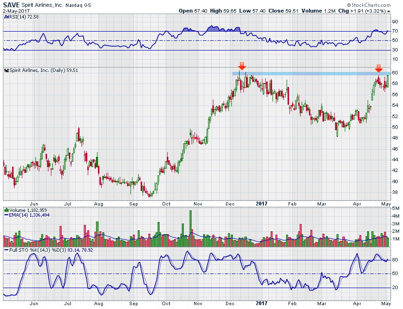 רף ה- 60 דולר מהווה אזור התנגדות בדמות השיא של שנת 2016 אשר בלם את גל העליות של רבעון 3 ואת העליות שרשמה בשבוע שעבר לאחר פרסום הדו"ח.