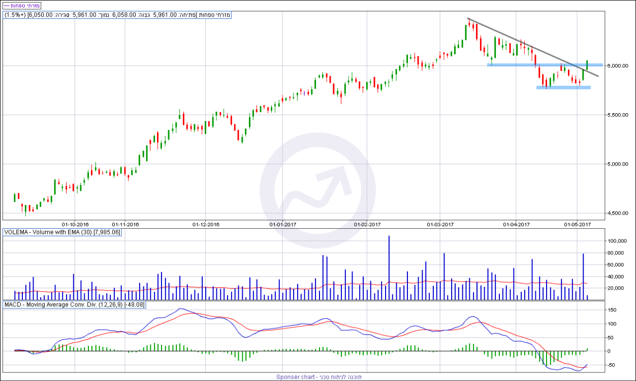 נעילה ברורה מעל 6000 נקודות יכולה להמשיך את המומנטום בטווח הקצר ולהוציא אל הפועל תבנית "W" שיעדה לאזור של 6280 נקודות ואולי אף חזרה לשיא.