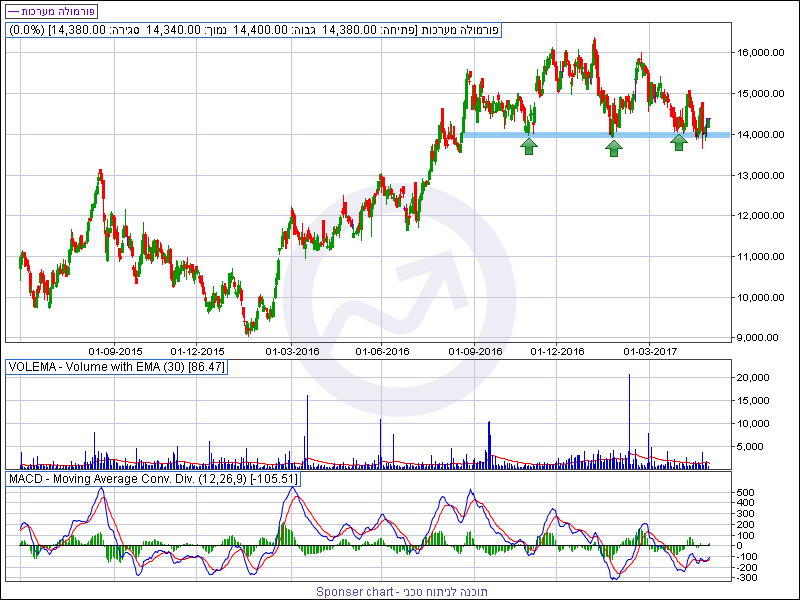 טכנית המניה נתמכה מעל אזור תמיכה מהותי סביב 14,000 נקודות. אותה רמה אשר בלמה את הירידות שנרשמו בחודש ינואר ובסוף חודש מרץ כך שרמה זו מסתמנת כרמה מהותית להמשך קיומה של המגמה העולה.