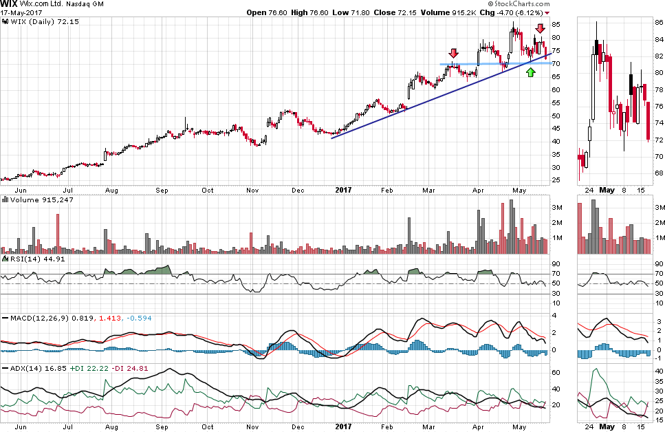 בימים האחרונים מתקשה המניה בהמשך המגמה ולמעשה בנתה שיא יורד ראשון מזה תקופה אשר בלם את המניה סביב 80 דולר למניה. אתמול ירדה המניה בעוצמה בדומה לשוק ושברה קו מגמה עולה אשר תמך בה מתחילת שנת 2017.