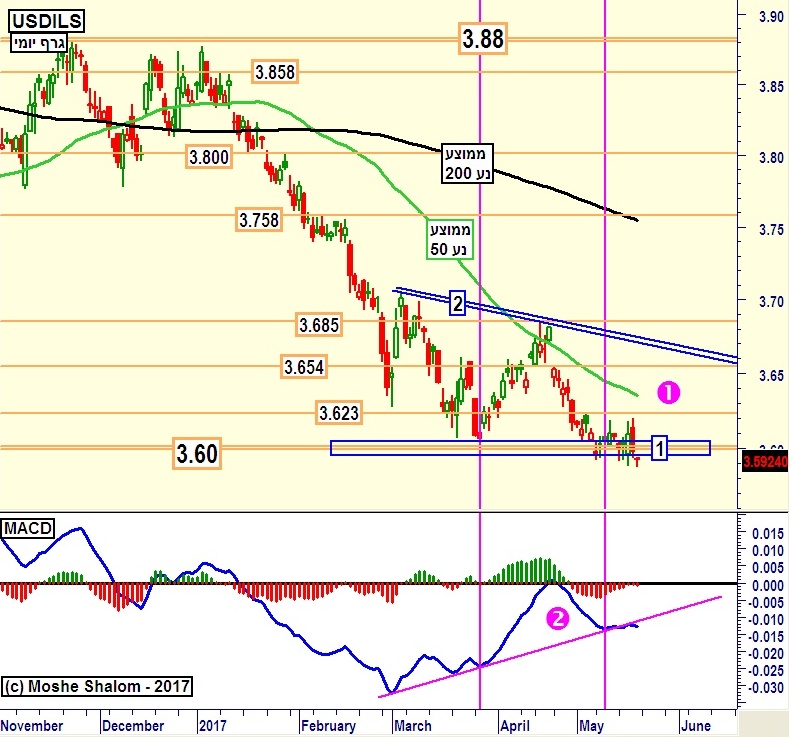 זוהי הסאגה של שבוע המסחר שעבר כאשר זה הסתיים רשמית מתחת ל-3.6, דהיינו סביב 3.59. נא ראו את 1 סגול בגרף היומי המצורף.