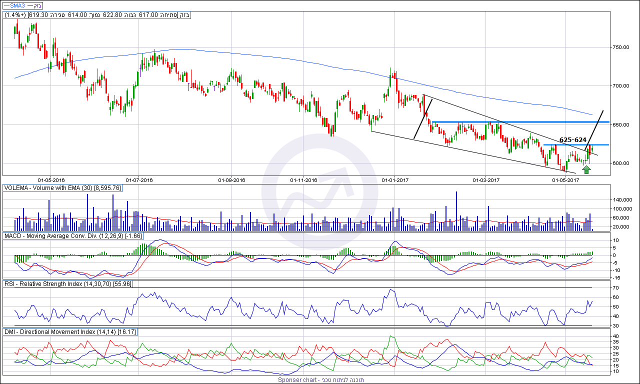 מניות החברה נסחרת בטרנד מחירים יורד כבר תקופה ארוכה מאוד כשהיא קובעת עוד ועוד שפלים חדשים מבחינת המחיר. בפעם הקודמת שהיה מבנה דומה המניה יצאה לתיקון עולה נאה מאוד עד לאזור של 720 נקודות וזה התרחש בדצמבר האחרון.