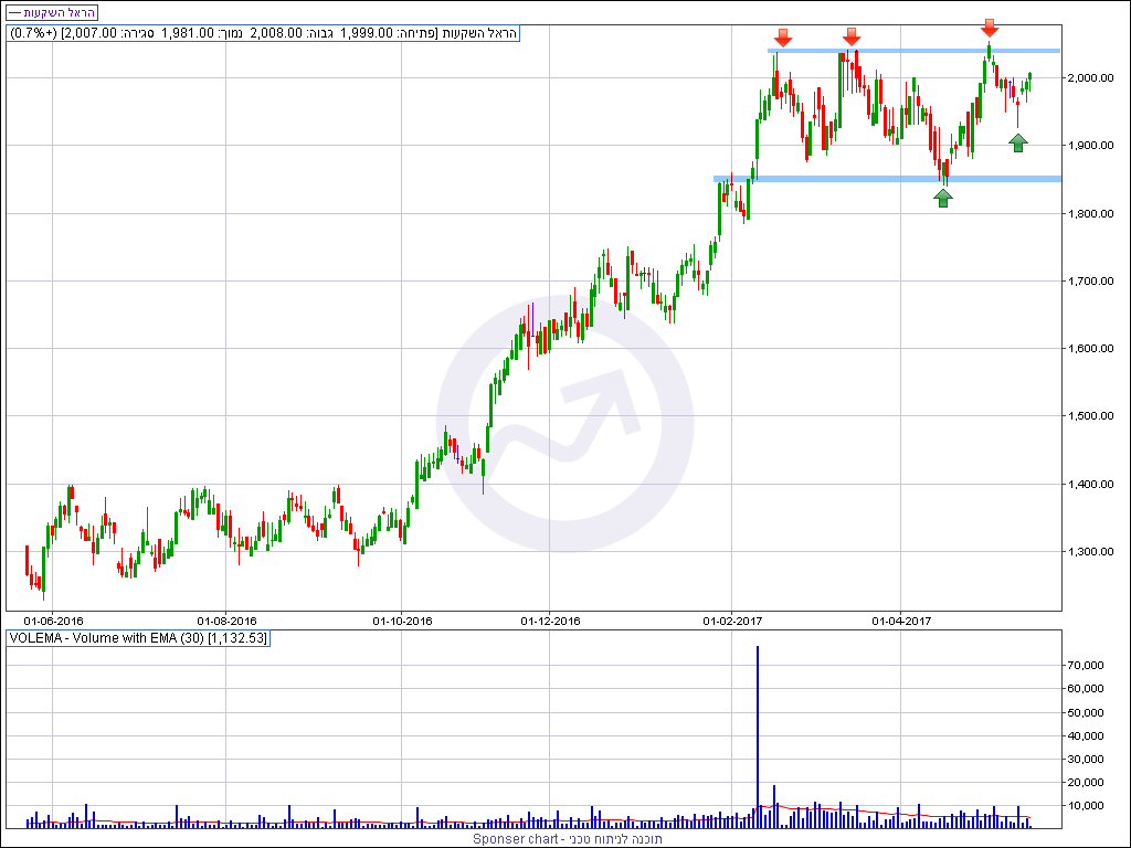 טכנית המניה מדשדשת בטווח מחירים שבין 2,037 נקודות מלמעלה ו- 1846 מלמטה. אזור הדשדוש התחתון משמש כרמת תמיכה חשובה לקיומה של המגמה העולה בטווח הקצר. בתחילת החודש המניה פרצה את ההתנגדות ב- 2,037 נקודות, אולם נסוגה חזרה אל תוך טווח הדשדוש. בימי המסחר האחרונים המניה רשמה שפל עולה בין הגבול העליון והתחתון, לכן ההנחה היא שהמניה מכוונת לפריצת ההתנגדות.