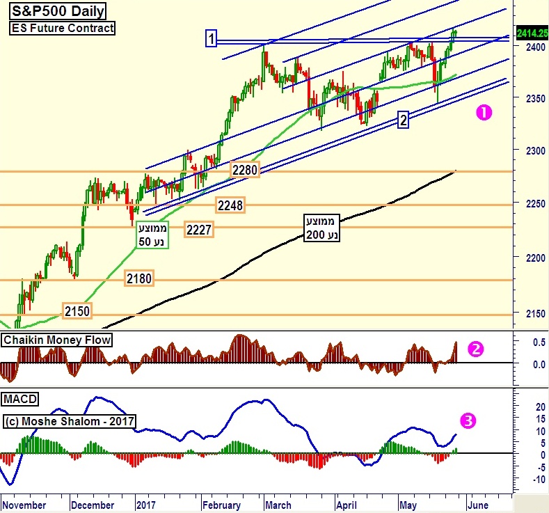אין שום גורם טכני כרגע היכול לומר אם המדד יוכל לעבור את 1436 או יוכל לשבור מטה את סביבת 1400. נא ראו את 1 סגול בגרף היומי המצורף. מבחינת גלי אליוט (לא מוצגים) יש הגיון בהמשך מעלה אבל במחיר, ובאינדיקאציה, הדברים קבועים ויציבים סביב אותו מחירים.