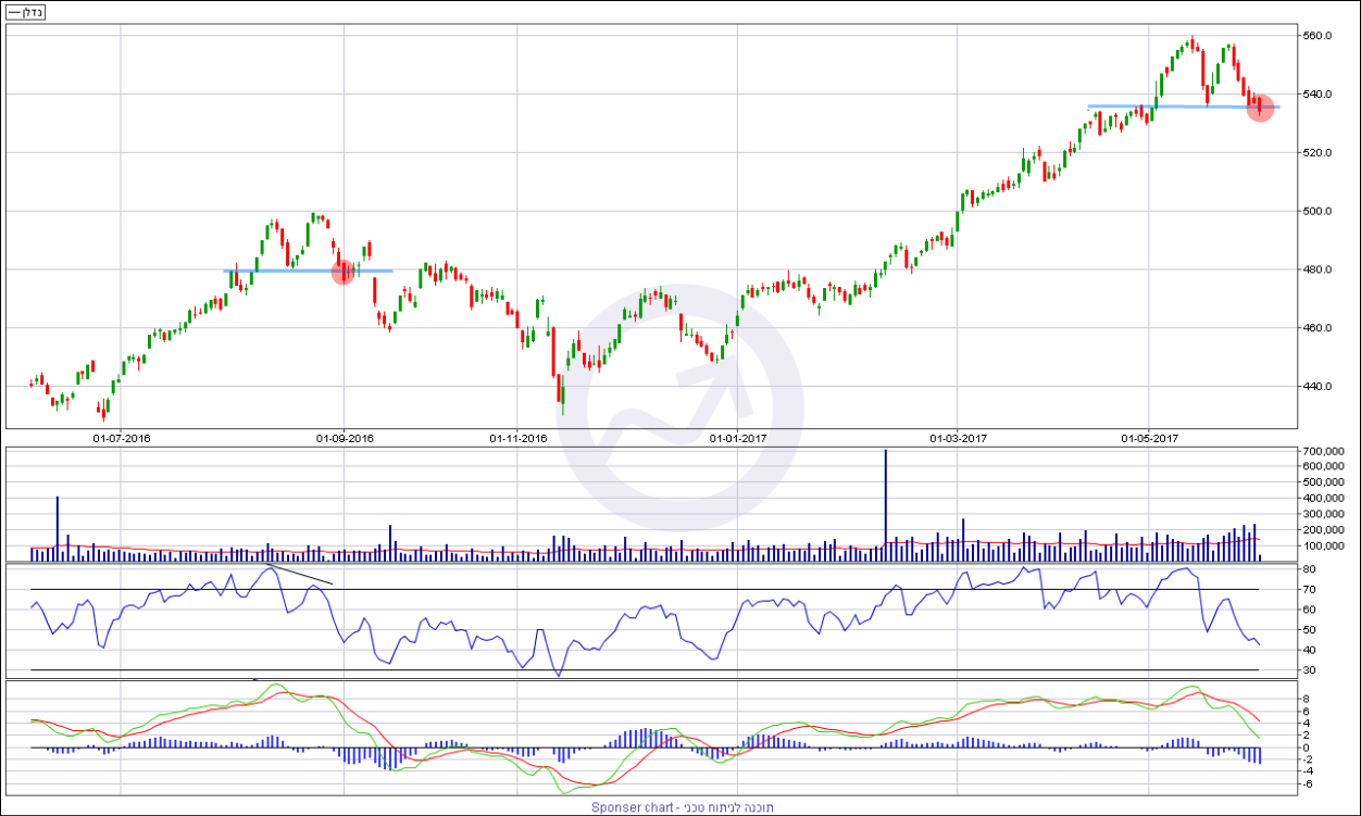 המדד נסחר בתבנית שלילית בטווח הקצר אולם חשוב להבין שקדמה לתבנית הזאת חצי שנה של עליות שערים חדות מאוד מרמה של 450 נקודות לשיא תקופתי חדש סמוך ל 560 נקודות.