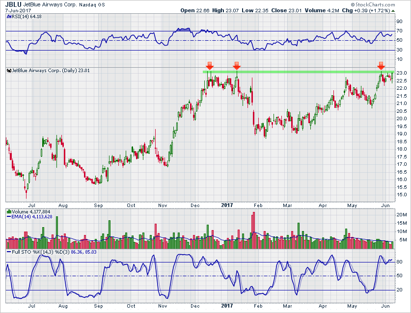 גרף מניית JBLU; מקור: StockCharts.com