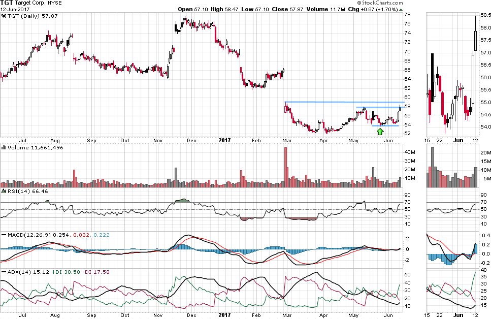 חברת טארגט (סימול- TGT) שייכת לסקטור השירותים ותת הסקטור רשתות הדיסקאונט. החברה הינה הבעלים של רשת מרכזי קניות ובתי קולבו הפועלים תחת מספר מותגים ברחבי ארה"ב. חנויות החברה מציעות למכירה מגוון רחב של מוצרים, אביזרי ביגוד והנעלה לגברים ונשים, ציוד ספורט, צעצועים, ציוד לתינוקות, מוצרי חשמל ואלקטרוניקה, כלי מטבע ואמבטיה ועוד. לחברה מספר מרכזי הפצה לוגיסטיים המשרתים את חנויות הרשת ואתר אינטרנט. החברה נסחרת במדד האס אנד פי 100 ו- 500 לפי שווי שוק של 31.92 מיליארד דולר.