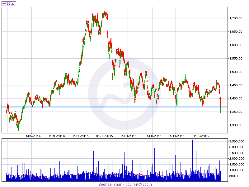מדד ת"א 35 פתח את יום המסחר בירידה חדה ברמה של 1346 נקודות ובכך משלים רצף של עשרה ימי ירידות, הרצף הארוך ביותר בשנים האחרונות. סה"כ המדד איבד מתחילת השנה 7.2% בעיקר בשל הירידה החדה במניות הפארמה. טבע איבדה כ- 53%, מיילן כ- 23% ופריגו כ- 20%.