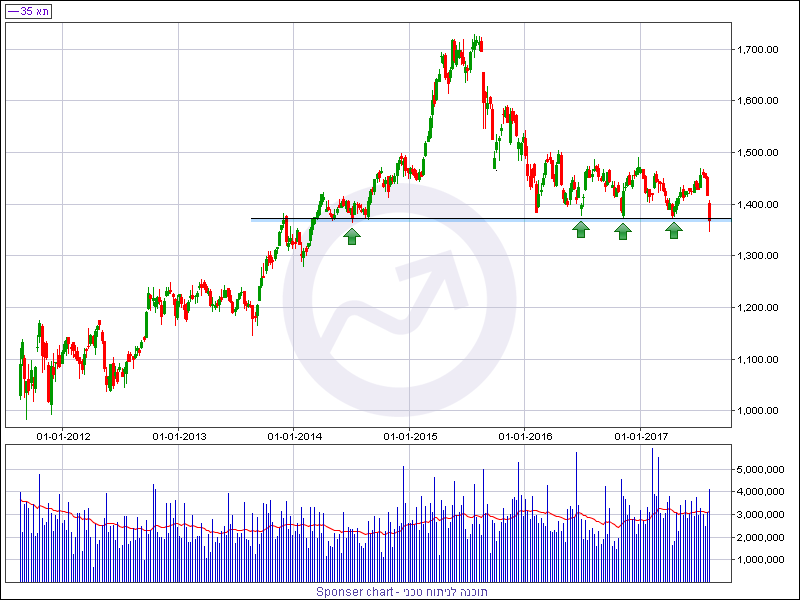 המדד דשדש עד ליום המסחר האחרון בטווח מסחר ברור. מתחילת 2016 ועד אתמול המדד דשדש בטווח מחירים שנע בין 1,500ברמת הקיצון ובפועל אזור 1,480 נקודות ב- 12 חודשים האחרונים. מלמטה אזור 1372-1375 שימש כאזור תמיכה חשוב אשר תמך מספר פעמים בירידות וכל פעם הוציא תיקון עולה מרשים.