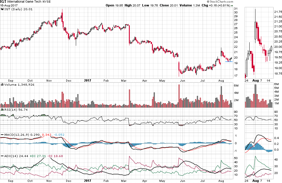 חברת אינטרנשיונל גיים טכנולוגי (סימול- IGT) עוסקת בעיצוב, פיתוח, ייצור, הפצה ומכירה של מכונות משחק ומערכת לבתי הימורים, מפעילי אולמות משחק ומפעילי הגרלות ממשלתיים. החברה מייצרת מגוון מכונות קזינו (סלוט מאשינס), משחקי וידאו, מסופים להגרלות לוטו ויחידות וידאו גיימינג. החברה נותנת שירות תמיכה ותחזוקה, שדרוג וזיכיונות תמורת תמלוגים. החברה נסחרת בבורסה של ניו יורק לפי שווי שוק של 4.1 מיליארד דולר.