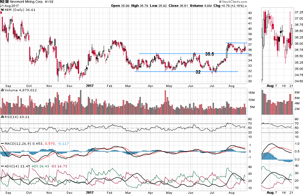 בחודש האחרון המניה נסחרת מתחת לאזור התנגדות נוסך סביב 38 דולר ומעל תמיכה סביב 35.5 דולר אותו אזור שנפרץ והופך כעת לתמיכה.