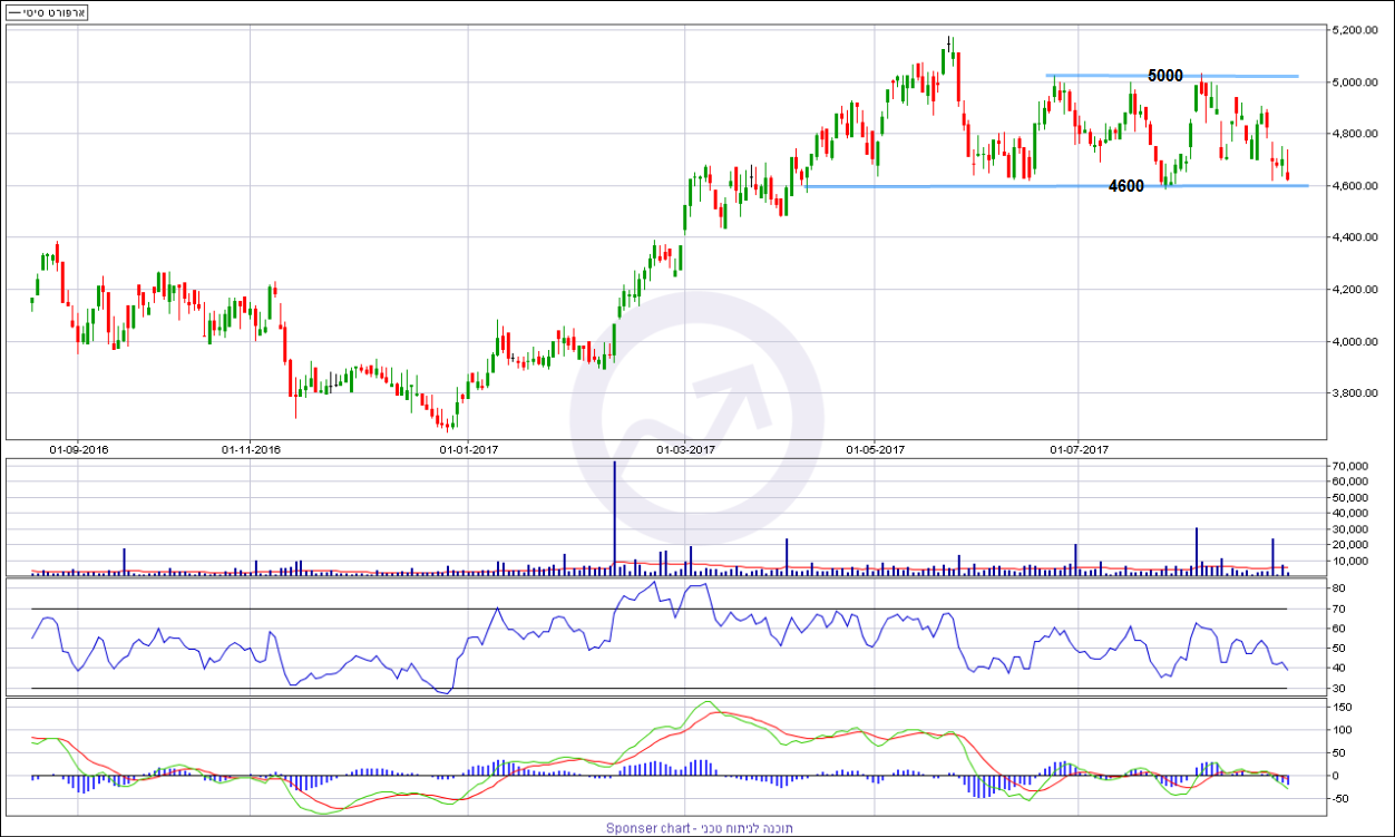 ניתוח טכני – בגרף היומי הקצר ניתן לראות שמניות החברה נסחרות בטווח מחירים צר יחסית. אזור התנגדות נמצא ברמה של 5000 נקודות ואילו אזור תמיכה סביב 4600 נקודות.