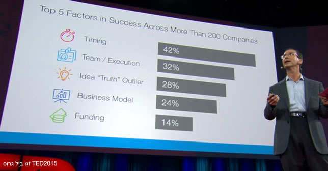 יש מחקר שנעשה על ידי ביל גרוס, אדם שליווה לא מעט סטארטאפים שהצליח להראות שהגורמים שבסופו של יום גרמו להם להצליח, לא היו קשורים אך ורק לרעיון, יותר מזה, הצליח להראות ביל, שמעל ל40% מהסטארטאפים שהצליחו הם דווקא אלו שיצאו בזמן הנכון, אבל השאלה הנשאלת תמיד – האם הם עשו שיווק או שמא כוח ה"פה לאוזן", אז אגיד לכם כבר מעכשיו, אין פה לאוזן כשמדובר בתעשייה של אלפי סטארטאפים כל חודש, הכל עניין של שיווק ושיווק נכון, לקהל הנכון, למממנים הנכונים, ואף, ללקוח הקצה הנכון.