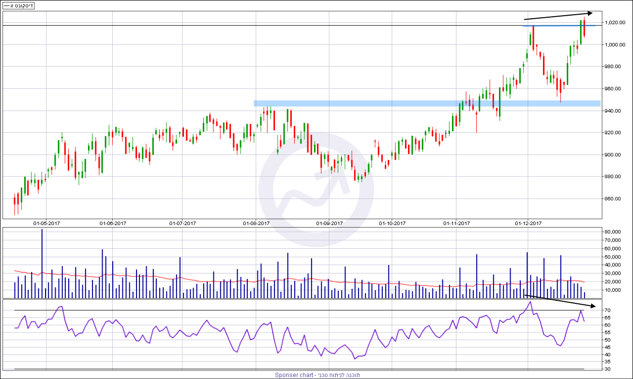 לסוחרי ההיפוכים המניה מציעה אפשרות למסחר. אתמול בחסות שוק חיובי ופריצת רמת 1500 נקודות במדד ת"א 35, פרצה המניה את השיא מתחילת החודש ברמה של 1017 נקודות ונעלה בגבוה חדש ברמה של 1022 נקודות.