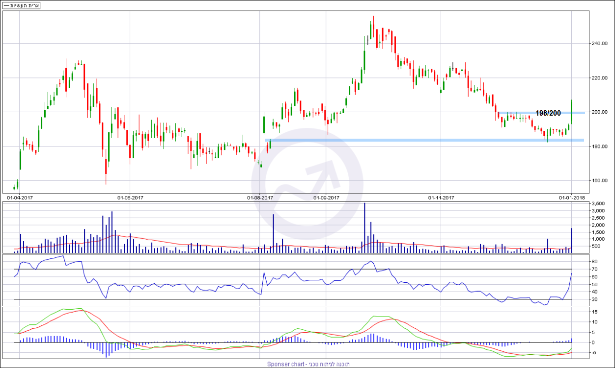 טכנית, היום המניה נותנת איתות כניסה עם תחילת התנועה ומעבר מעל 200 נקודות שבלמו את המניה בחציו הראשון של חודש דצמבר האחרון.