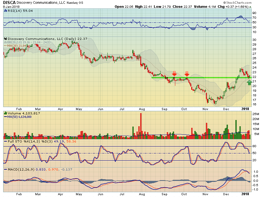 דיסקברי הולדינגס (סימבול: DISCA) – פועלת כחברת מדיה עולמית ובבעלותה רשתות טלויזיה כגון ערוץ דיסקברי, יורו ספורט, DMX ואנימל פלנט. בנוסף, החברה מפתחת ומוכרת מוצרים ושירותים חינוכיים המבוססים על תוכניות לימוד בשיטת VOD. לחברה אולפני ייצור לפיתוח תכנים לספקי שירות ואתרי אינטרנט. לחברה 400 ערוצי הפצה ב- 40 שפות.