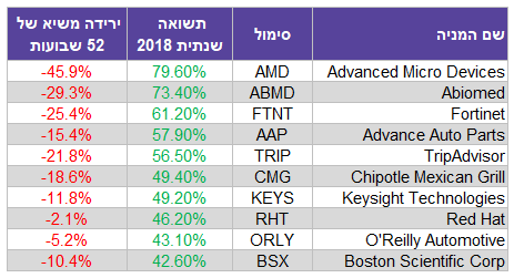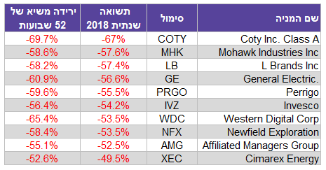 למרות זאת 329 חברות מהמדד השיאו תשואה שלילית בשנה האחרונה הבולטות שבהן: