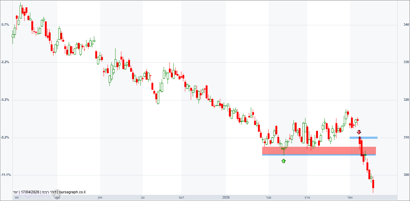דולר-שקל דובי הכותרות ”התרגשו” בשבוע שעבר עם ירידת הדולר מתחת ל-3 שקלים. מי שקורא את הסקירה שלנו לא אמור להיות מופתע שכן רמה של 3 דולר לשקל היא סימבולית בעיקר ואינה טכנית. בשורה התחתונה הדולר המשיך את הקריסה שלו גם בהמשך השבוע לתוך שישי כשהוא מגיע ל-2.95+ ודי קרוב ליעד שלנו סביב 2.90 דולר לשקל. הירידה האחרונה חדה מאוד ולכן סיכוי לא רע שנקבל את היעד בקרוב, תיקון עולה מתבקש אולם הוא לא ישנה את המגמה. התנגדות קרובה שפל האחרון שנשבר סביב 3.05 ומעל 3.10 שנראה רחוק, רחוק בשלב זה.