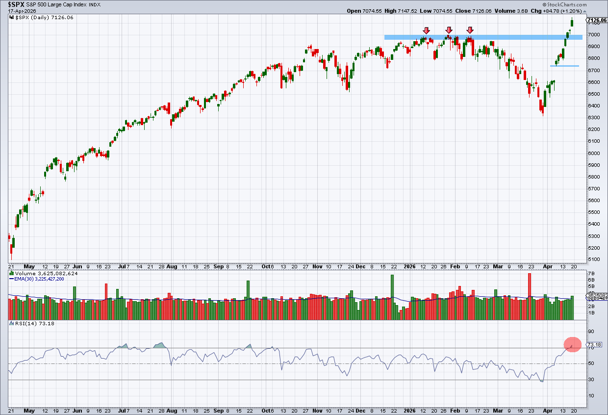 בשבוע שעבר ציינו שהיציאה קדימה חיסלה למעשה את המהלך היורד, וסימנו את השיא האחרון כיעד. קצב העליות והעוצמה הפתיעה גם אותנו. בשורה התחתונה המדד עושה מהלך ”מחוף לחוף” ועד לגבוה חדש. הנחה כללית היא כל עוד המדד מעל לשיא של 7,000 הוא חיובי, כל נסיגה אליו הזדמנות חבירה. חשוב לציין שאינדיקטורים לטווח קצר הגיעו לרמות גבוהות יחסית בשל העלייה האחרונה שהייתה כמעט ורציפה בשלושת השבועות האחרונים עם יום שלילי אחד בלבד ב-13 ימי המסחר האחרונים. זה אומר שהתבססות או תנועה הצידה בהחלט מתבקשים.