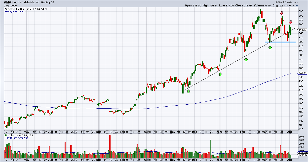 אפלייד מטריאלס (AMAT) דובי מניות החברה נסחרות בבורסת הנאסד”ק לפי שווי שוק של 276.3 מיליארד דולר. המניה אומנם שברה קו מגמה עולה אך נבלמה סמוך לשפל האחרון כשהיא בונה תמיכה סביב 316/20 דולר למניה. התנגדות קרובה קיימת סביב 380 דולר שיא אחרון. התנועה בחודשיים האחרונים מתחילה להתכנס וכנראה לפני הכרעה, האם חוזרים לשיאים או שיוצאים לתיקון משמעותי לאחר הראלי האחרון?