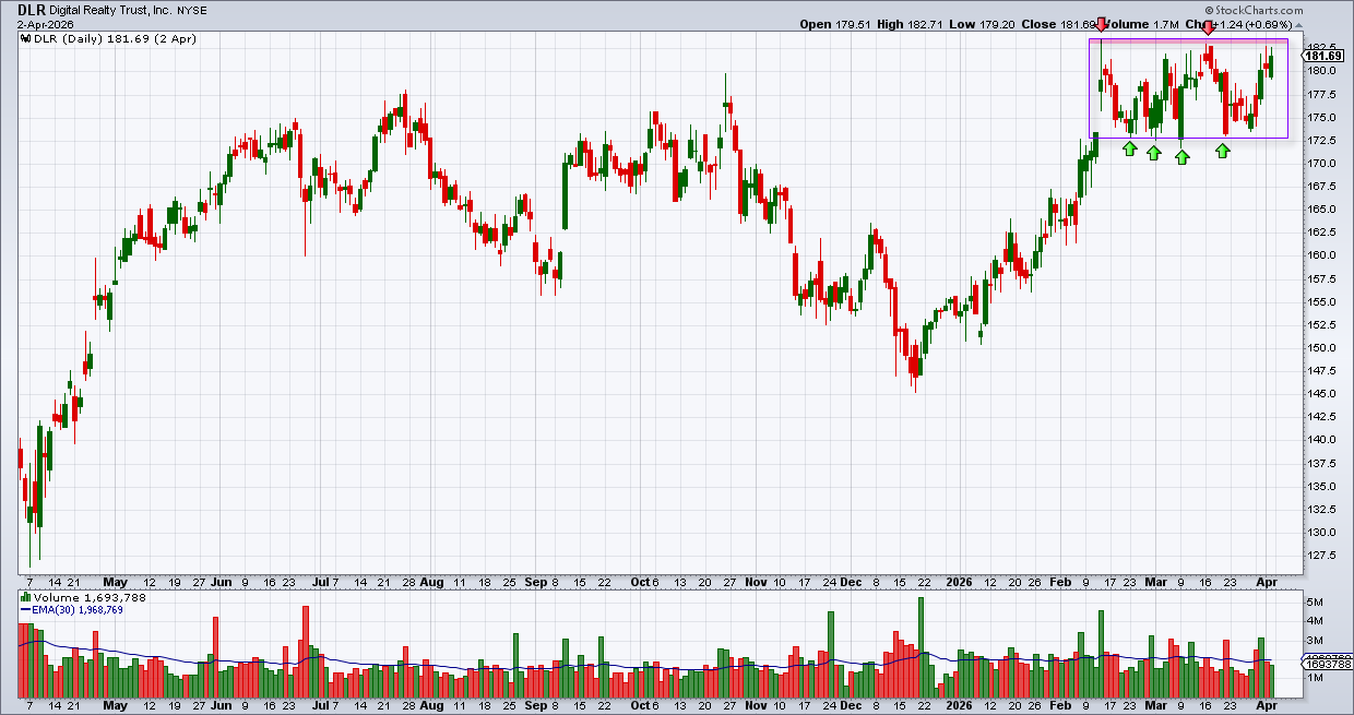 מניות החברה נסחרות בבורסת ניו יורק. מניית קרן הריט המפעילה מאות מרכזי נתונים ברחבי העולם מדשדשת מתחת לאזור השיא השנתי בין אזור 172.7 דולר מלמטה לבין 183-183.5 דולר מלמעלה. פריצה וסגירה מעל אזור ההתנגדות הנ”ל בליווי מחזור מסחר תומך יסלול את הדרך להמשך המגמה החיובית. אזור 189.5 דולר סומן כשיא תומך יומי של שנת 2024 ועשוי להוות התנגדות פסיכולוגית במקרה ואכן תפרוץ.