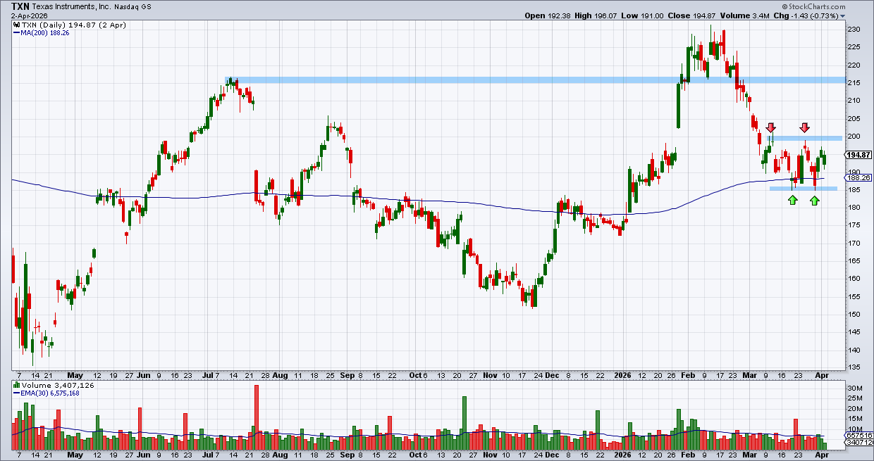 טקסס אינסטרומנטס (TXN) דובי מניות החברה נסחרות בבורסת הנאסד”ק לפי שווי שוק של 177.3 מיליארד דולר. המניה יצאה לתיקון טכני לריצה האחרונה, לא לפני שקבעה גבוה חדש שלא החזיק מעל 216 דולר למניה. בחודש האחרונה המניה מנסה לייצר תחתית סביב 185 דולר שם גם נמצא ממוצע 200. יציאה מעל 200 דולר יכולה לאשר את סיום התיקון הטכני ואופציה לעלות לאזור של 215/6 דולר בשלב ראשון.